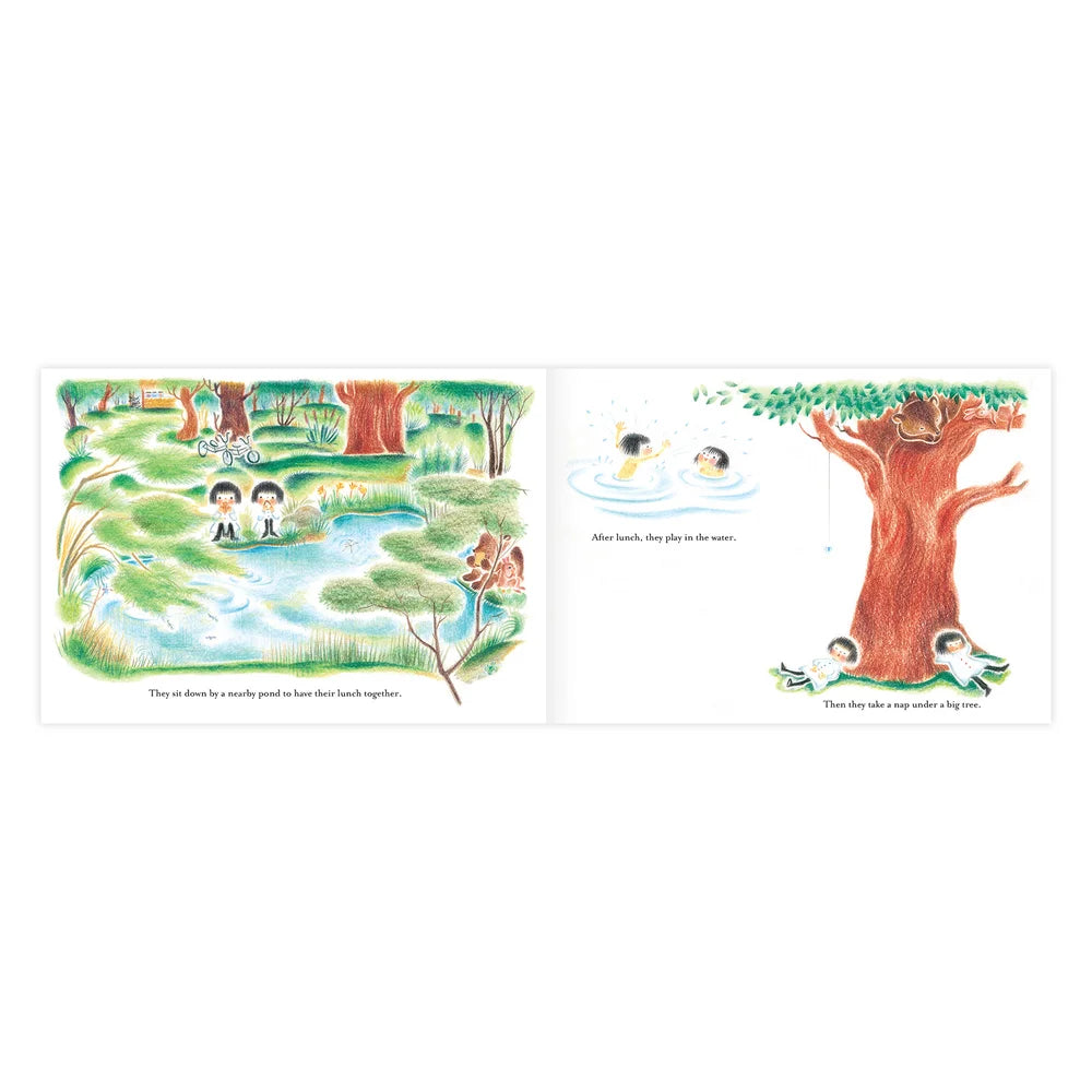 "Doi's illustrations are a large part of the appeal of this book. The two girls are matching except for the buttons on their dresses. The illustrations celebrate the different sizes of creatures and also the food and drink that the girls have along the way. Just the acorn coffee and clover tea will have your mouth watering. Expect plenty of tea parties and sandwiches after reading this." —Tasha Saecker, Waking Brain Cells
