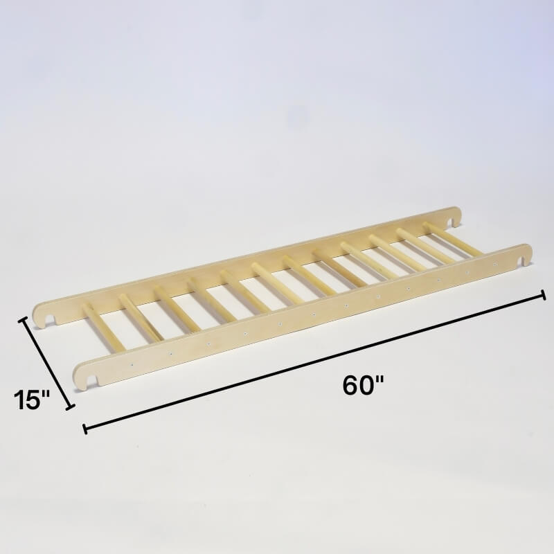 Inspired by German Educator Elfriede Hengstenberg, our RAD Ladder is a perfect pairing to our Pikler Triangles. It hooks onto any size of Pikler Triangle to provide and expanded experience for children as they advance in their gross motor skills and dexterity. It is easy to attach one end to a Pikler Triangle to create a more advanced climbing ramp or connect between two Pikler Triangles to create a climbing bridge for hours of climbing fun. The Hengstenberg Ladder is perfect for children who crave a more advanced level of climbing difficulty to double their fun.
